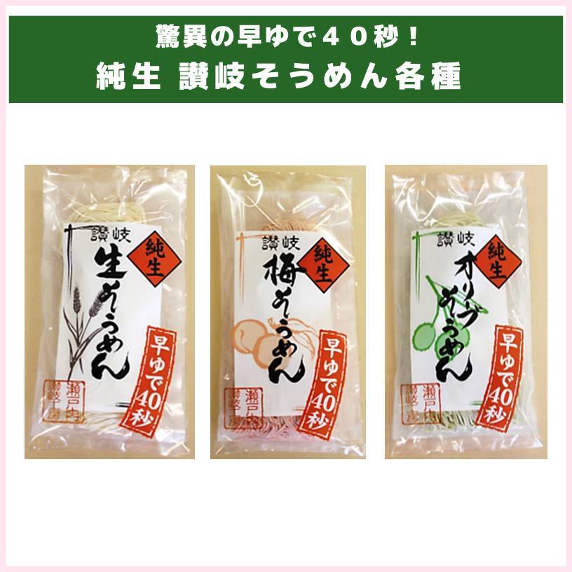 ① 純生 讃岐生そうめん JAN:4582293811359 ② 純生 讃岐梅そうめん JAN:4582293811434 ③ 純生 讃岐オリーブそうめん JAN:4582293811441 |