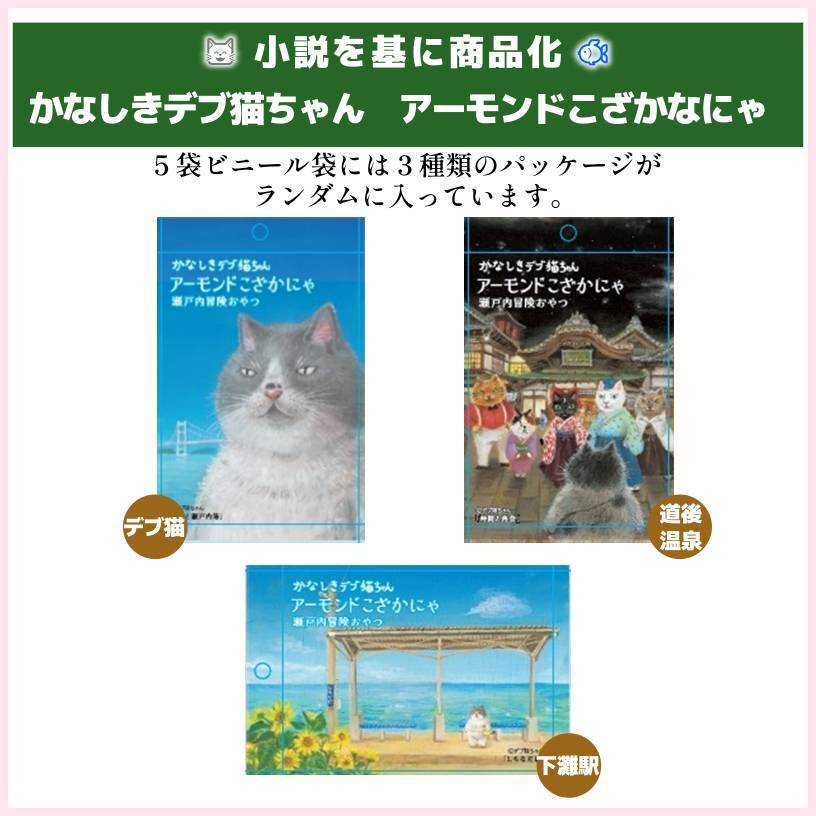中・四国で有名な小説「かなしきデブ猫ちゃん」を基に、アーモンド小魚を商品化しました。