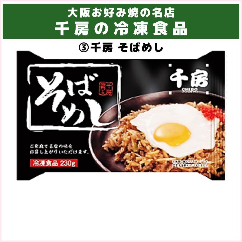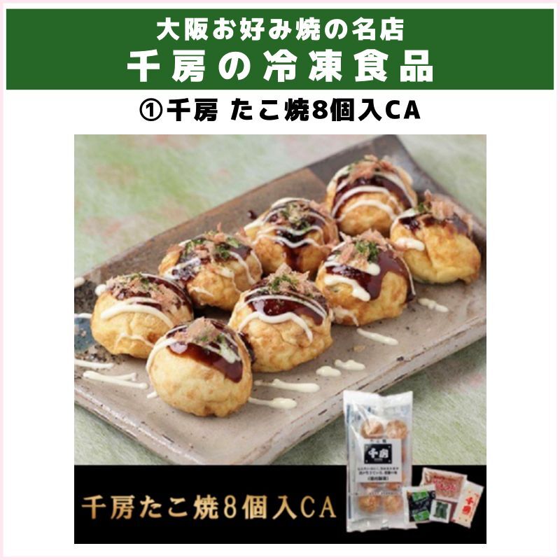 ① 冷凍 千房たこ焼8個入CA JAN:4519230500496 ② 冷凍 千房チーズねぎ焼 JAN:4519230200228 ③ 冷凍 千房そばめし JAN:4519230150042 |