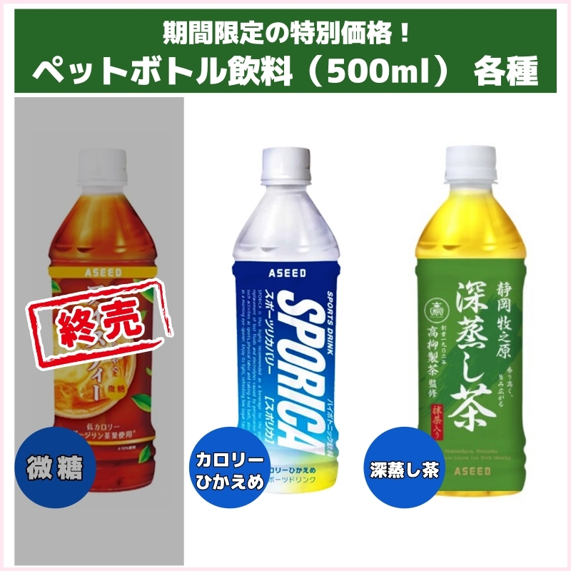 期間限定の特別価格!ペットボトル飲料(500ml) 各種